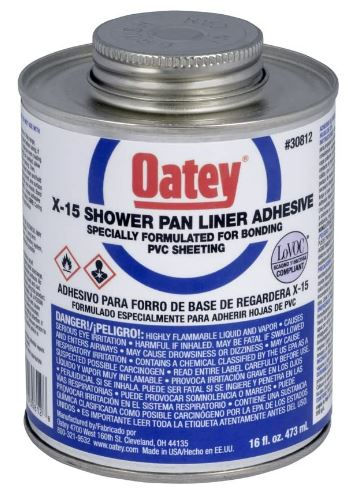 Shower Pan Liner Glue - 30812 X-15, PVC Solvent w/ Dauber, White, 16 fl oz.